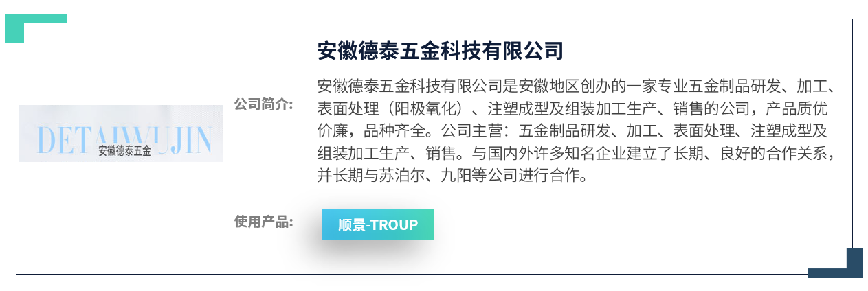 在德泰五金对多家ERP厂商反复调研,查看ERP产品等一系列的了解和咨询后,最终于2018年4月选择携手在制造业领域拥有20余年丰富经验的顺景软件作为信息化合作伙伴,并选定顺景ERP系统作为此次管理变革的重要工具。